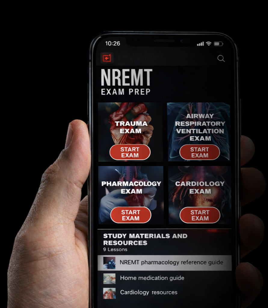 ✅ Category specific Exams for all core categories including: Airway, Respiratory, Ventilation, Cardiology, Trauma, OBGYN, Pharmacology, and EMS operations.