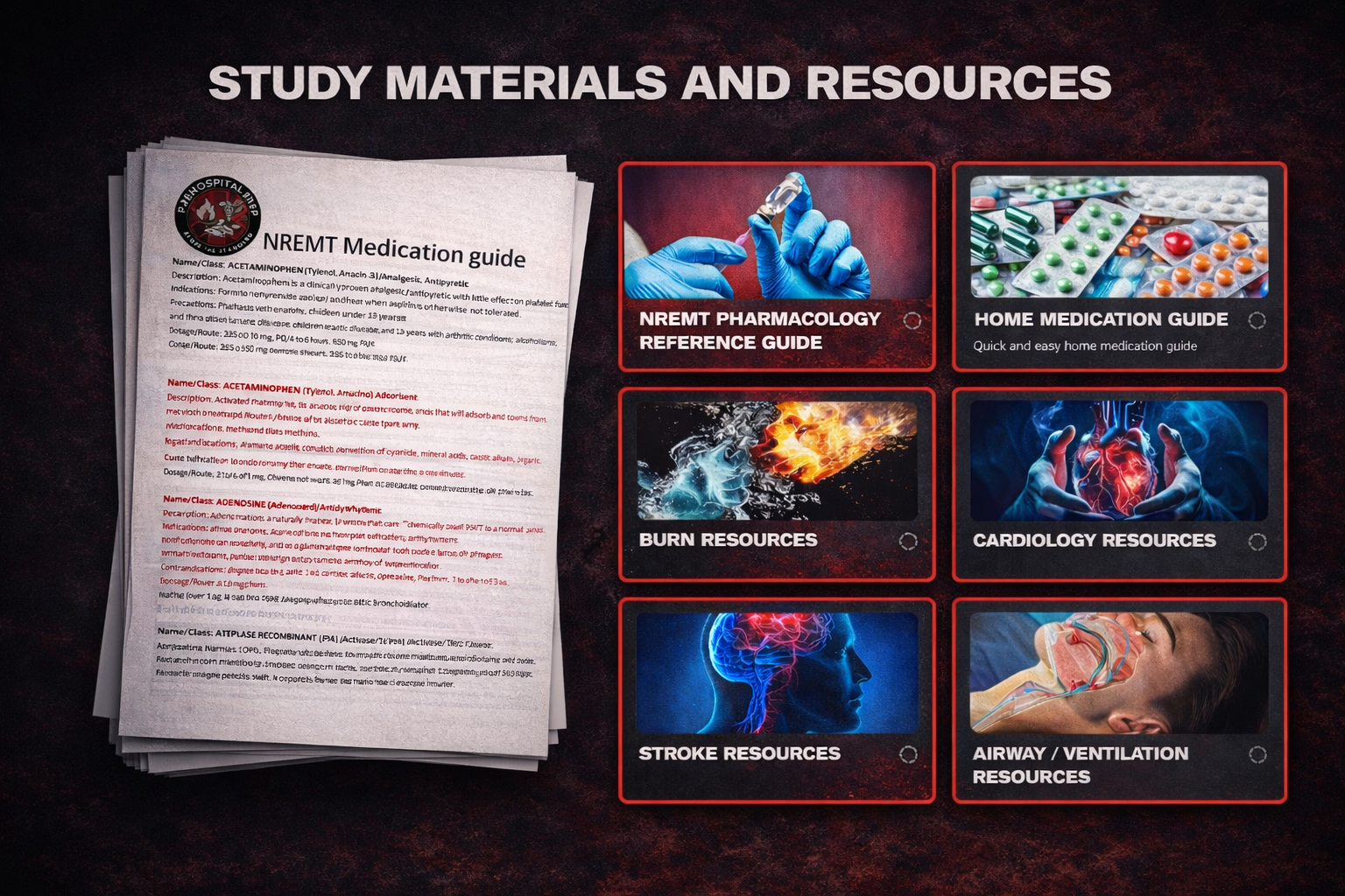 Access a massive library of reference materials designed to support every part of your NREMT prep. Quickly review critical concepts, reinforce weak areas, and build confidence with easy-to-use study tools. Includes: